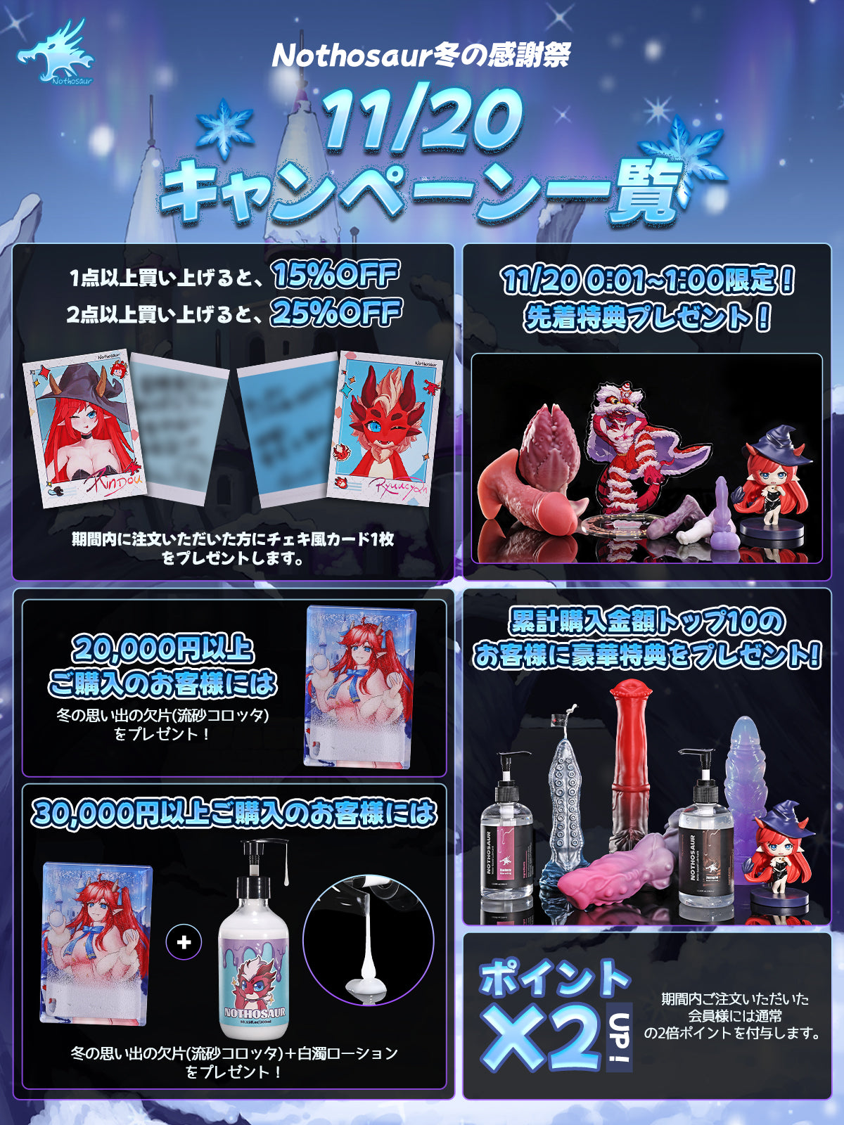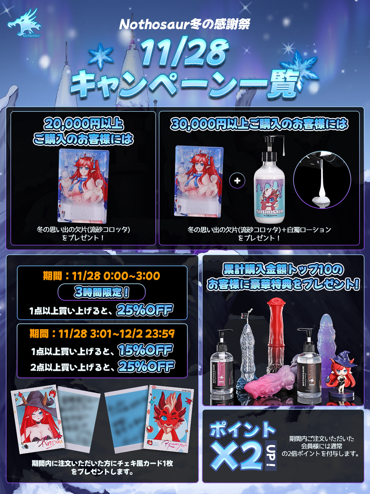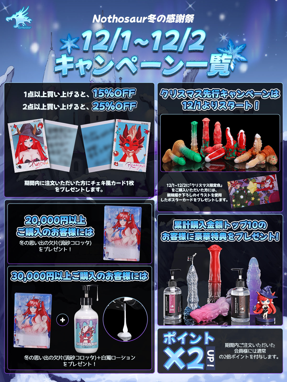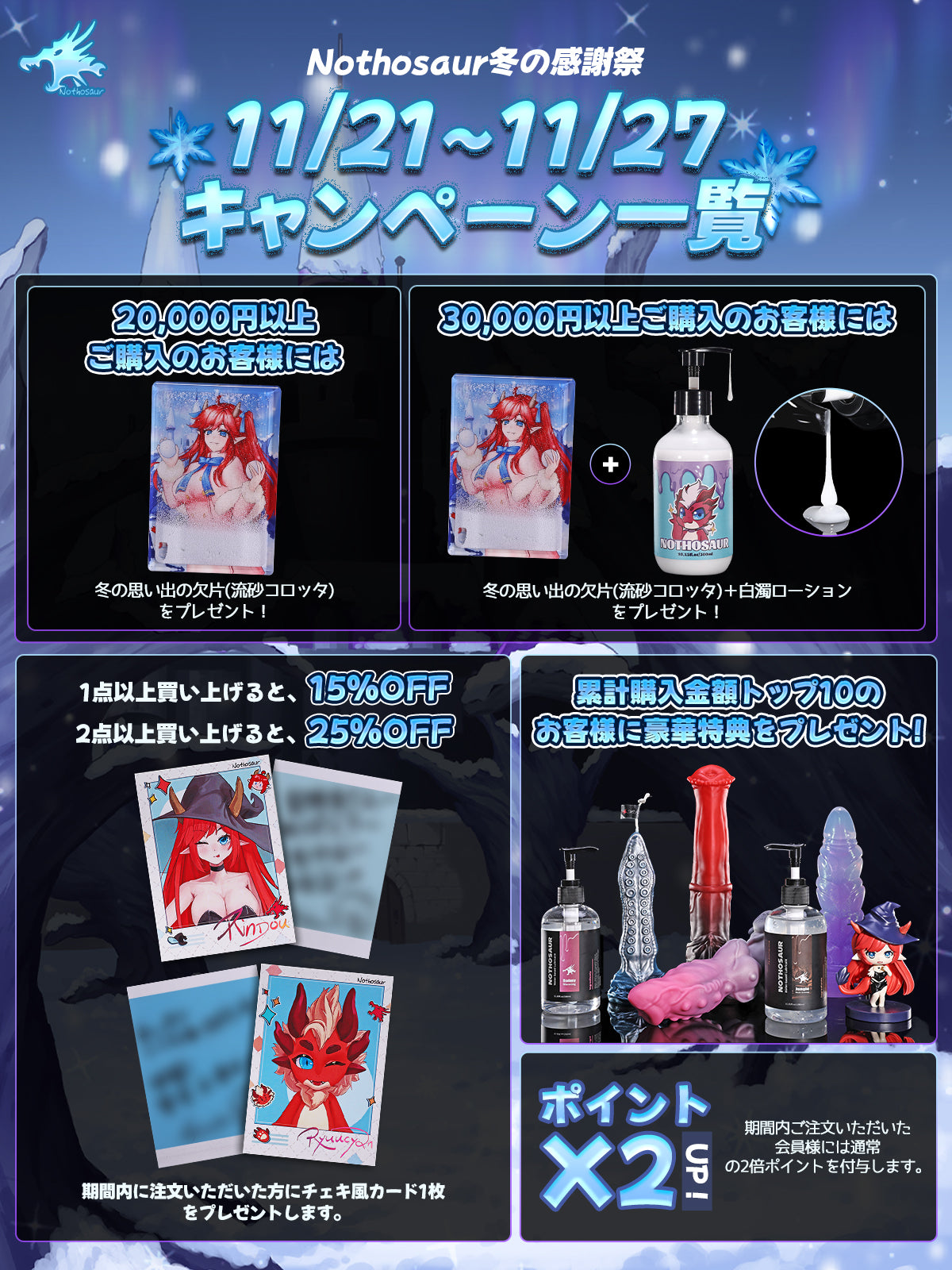 ·30,000円以上ご購入のお客様には「冬の思い出の欠片(流砂コロッタ)」+「白濁ローション」をプレゼント!