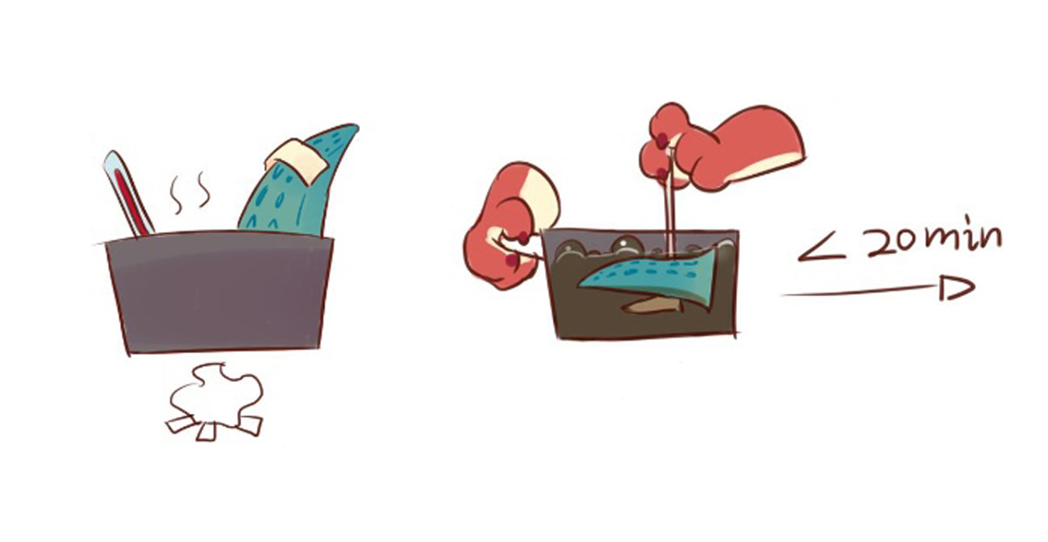 定期的にお湯で浸して消毒してください。(2週間に1回程度)