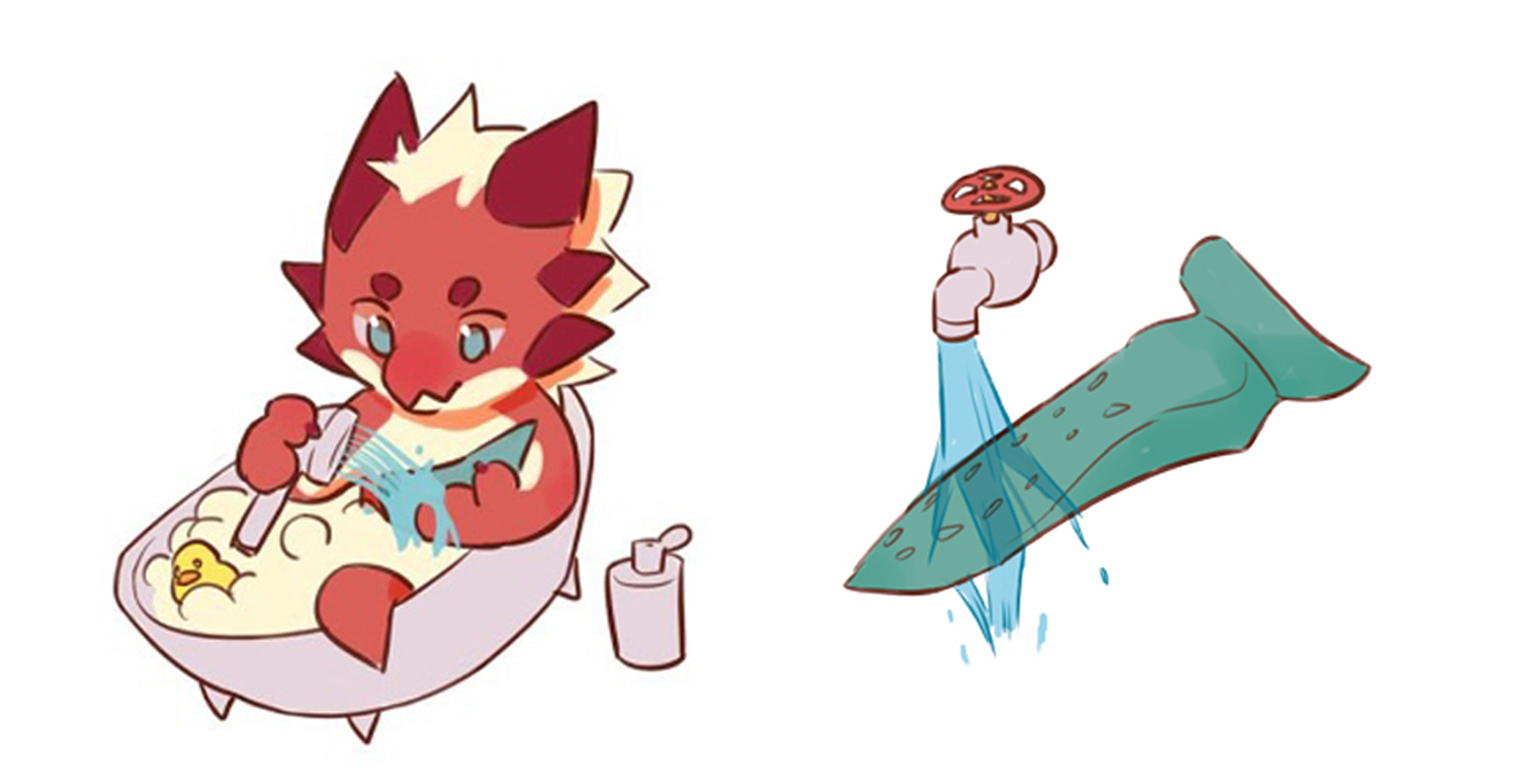 ③まず、おもちゃにボディシャンプーで洗って、清潔な流水で洗浄してください。※表面を劣化させてしまう可能性があるので、食器用洗剤や衣類の洗濯用洗剤は使用することができないため注意してください。