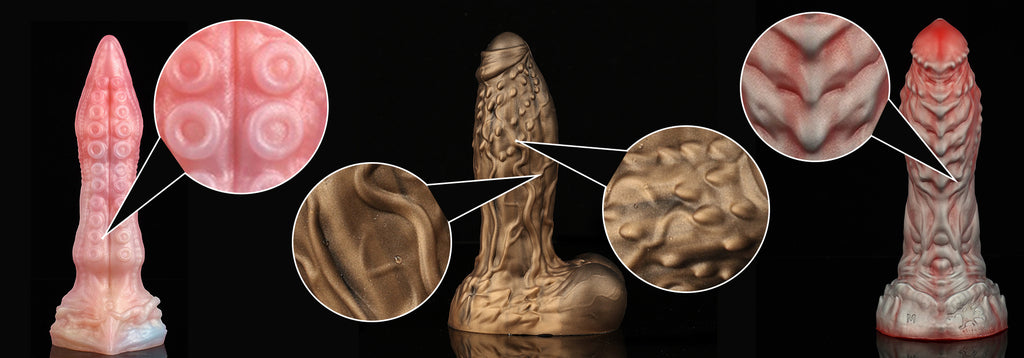 男性や女性の刺激ポイントに合わせてデザインされた隆起や棘、繊細な彫刻が施されたディルドで、一目で絶妙なデザイングッズをお楽しみいただけます。