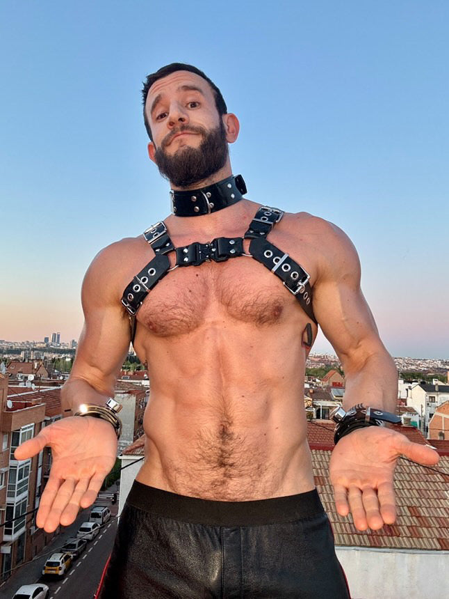 ハーネスとは、胸や上半身に装着するベルト状の装備で、身体の筋肉やラインを強調するデザインが特徴です。フェティッシュファッション、BDSM、ゲイイベントにおいては定番のアイテムであり、存在感のあるアクセサリーとして人気を集めています。