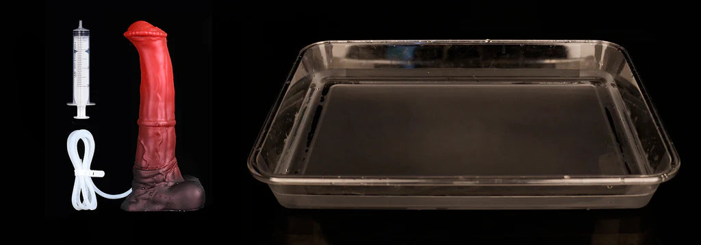 射精ディルドは、内部に導管があり、注射器を使用してローションや液体をディルドの先端から噴出することで、疑似射精を体験できます。これにより、中出しや顔射、口内射精などのシミュレーションが可能です。