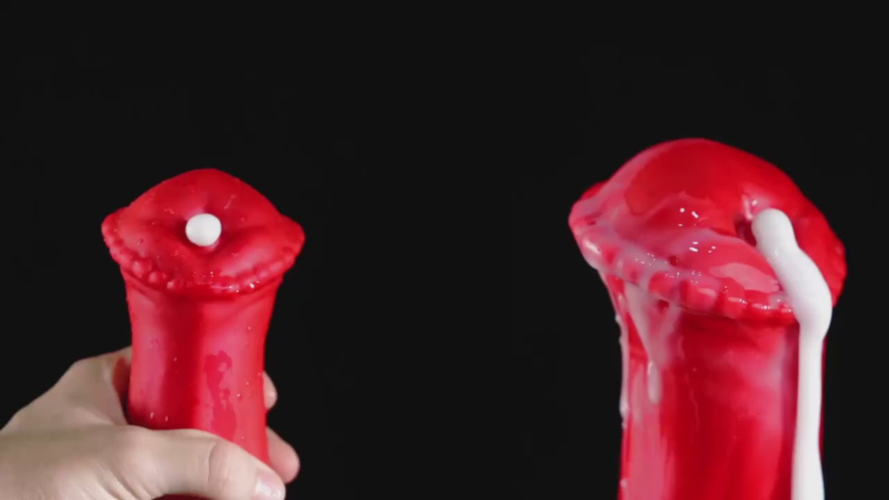 Nothosaurの射精ディルドには注射器が付属しており、注射器で液体を吸い取って導管と組み合わせることで、簡単に射精機能を使うことができます。