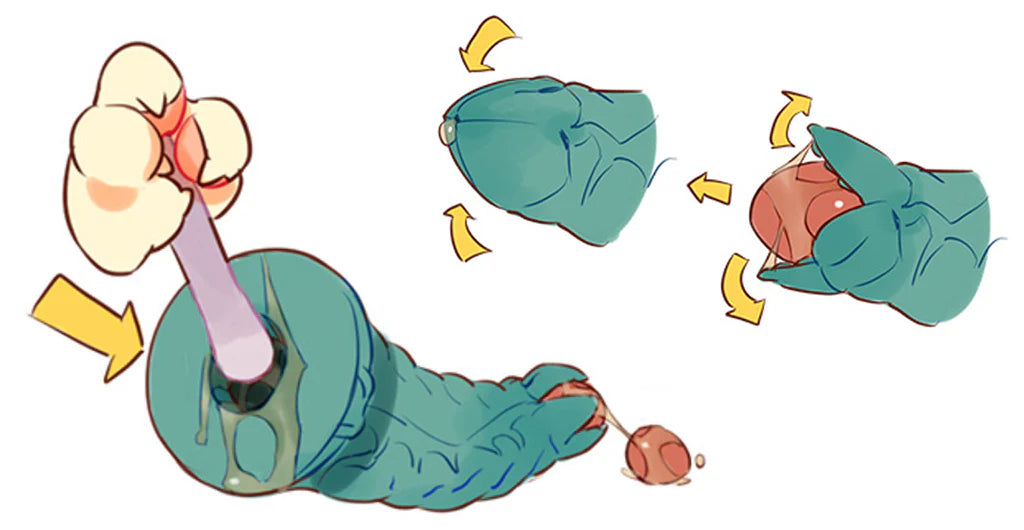 ⑨産卵器を抜いて体内にある卵を排出すると、「産卵」の体験を楽しめます。